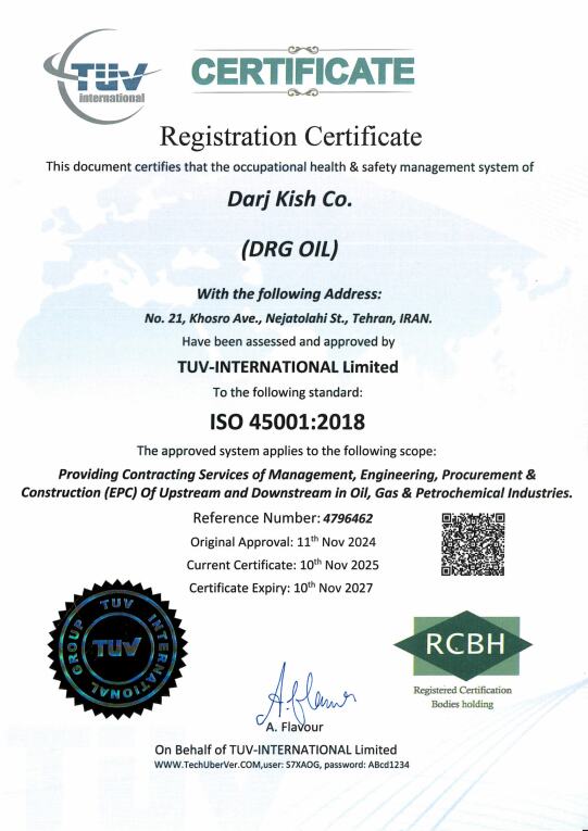 دارج کیش با توجه به اهداف و سیاست های خود علاوه بر ایجاد رضایت در انجام فعالیت های خود برای کارفرمایان در زمینه ایمنی